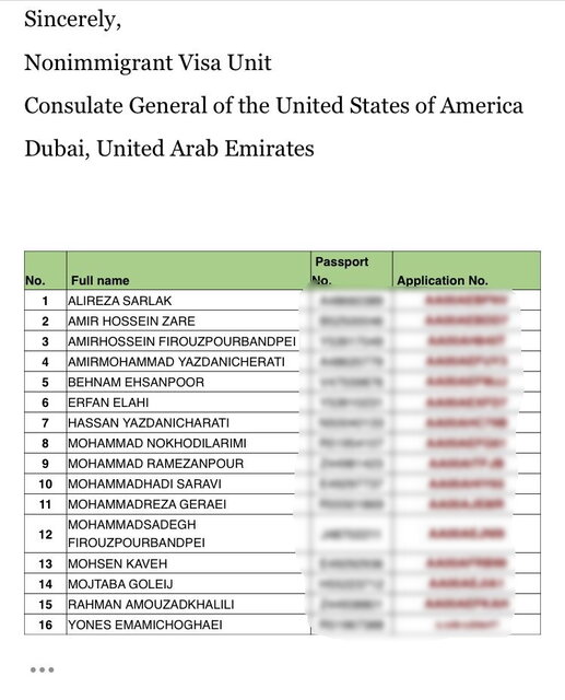 فهرست نفراتی که برای آنها ویزا صادر شده در تصویر زیر دیده میشود.