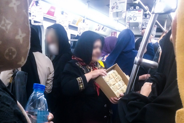 در ایستگاه شهید بهشتی ازدحام به مرز خفگی میرسد و لشگر دستفروشها ناگهان حملهور میشود؛ رگال مسواکها، جورابها، چوبلباسیهایی که تاپ و دامن و تیشرتها را باد میدهند، بستههای هل و زعفران، کیک و بیسکویت، پیراشکیهای تازه و کلوچههای فومن و رگالهای پر و پیمان شارژر و کابل و هندزفری آدم را خسته میکنند. صدای اعتراض از بعضی قسمتها شنیده میشود و اخمهایی که توی هم رفته از مردم کلافه و عصبیای حکایت میکند که پشت ماسکهای صورتشان معلوم نیست علیه دستفروشها چه میگویند. اسکناسها ولی همچنان ردوبدل میشود و دستگاههای کارتخوان از این واگن به آن واگن، حساب و کتاب دستفروشها و مشتریها را صاف میکند.