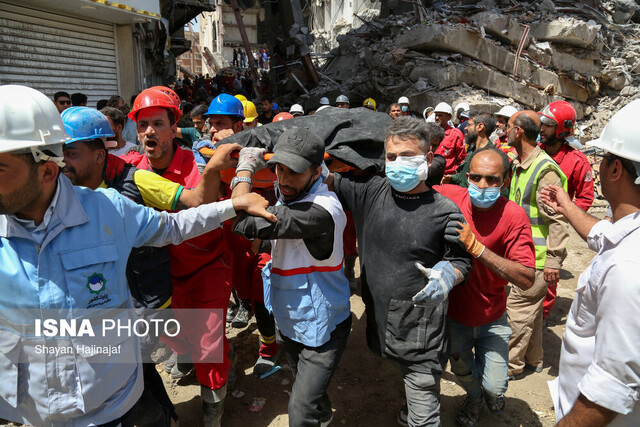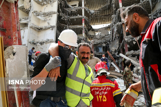 وی افزود: نیروها از سراسر استان خوزستان و استانهای دیگر که متخصص این موضوع هستند وارد صحنه شدند. البته با توجه به این که پایههای ساختمان لرزان است، طبیعتا باید در انجام کار مراعات کنیم زیرا بخشی از ساختمان فرو ریخته و مابقی نیز به شدت آسیب دیده و ممکن است ریزش داشته باشد و باید کاملا رعایت کنیم.