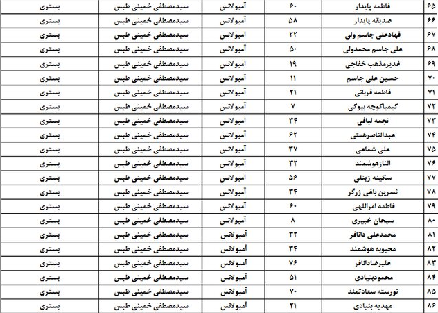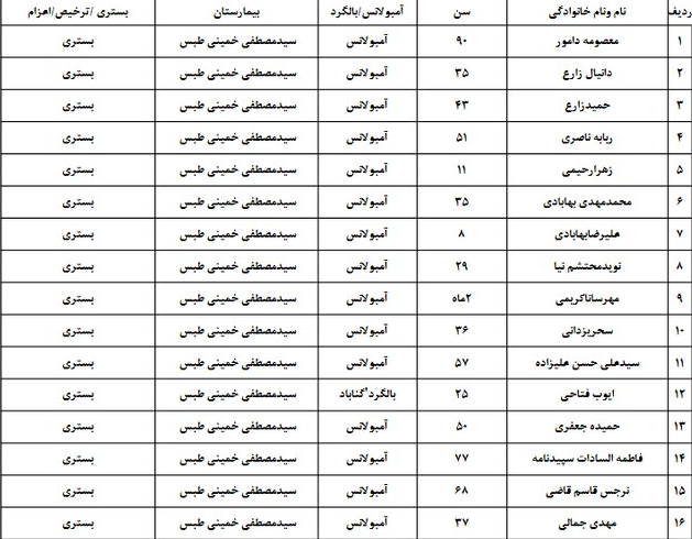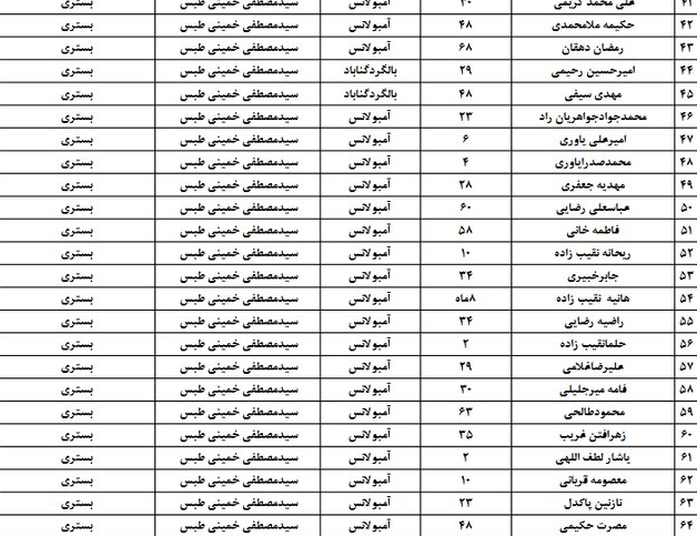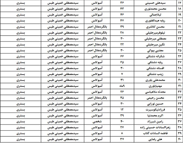 سخنگوی اورژانس کشور اسامی۸۶ نفر از مصدومان این حادثه را به شرح زیر اعلام کرد.