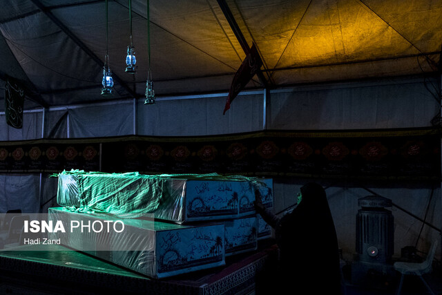 از بین شهدا تنها یک شهید نام و تصویر دارد؛ شهید محسن اسماعیلی، ۲۸ ساله، دیگر شهدا گمنام‌اند.  بودن در کنار شهید گمنام، حال غریبی دارد، شهیدی که نمیدانی نامش چیست؟ چند ساله بوده؟ مادرش کجاست؟ هنوز منتظر است؟ یا با همان چشم به راهی از دنیا رفته؟‌ اما اینجا، همه این زنان آمده‌اند تا برای این شهدا مادری کنند، فقط آوردن نام شهید گمنام توسط مجری مراسم کافی است تا صدای جمعیت و زنان به گریه و ذکر یا زهرا بلند شود.