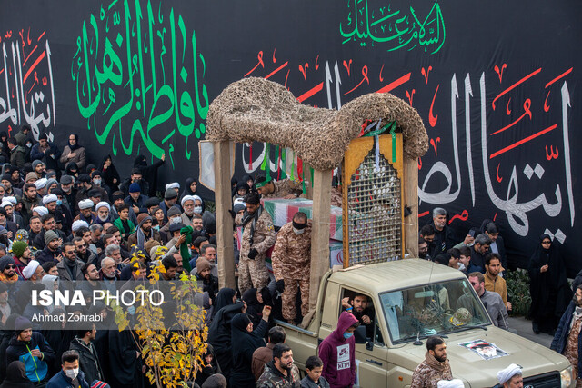 ایسنا/خراسان رضوی مراسم تشییع پیکر ۴۰۰ شهید گمنام دفاع مقدس از صبح امروز ششم دی مصادف با سالروز شهادت حضرت زهرا(س) در سراسر کشور در حال برگزاری است و در مشهد نیز مردم انقلابی برای بدرقه پیکر پاک ۱۲ شهید گمنام، در عرصه میدان شهدا حاضر شده‌اند و در حال حرکت به سمت حرم مطهر رضوی اند.