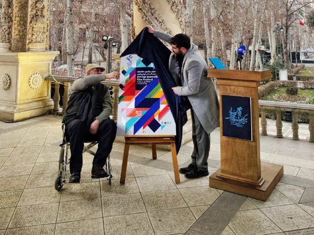 پوستر جشنواره فیلم فجر توسط مسعود نجابتی طراحی شده است.