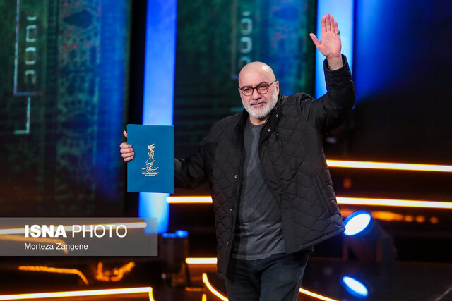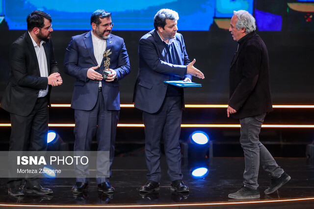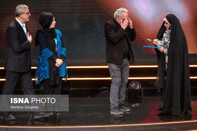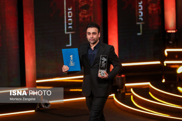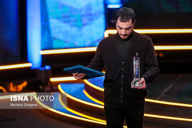 محمدحسین لطیفی بر روی صحنه حاضر شد و جایزهاش را دریافت کرد.