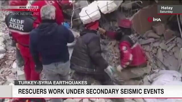 ۹:۱۸ - به گزارش شبکه تلویزیونی ان اچ کی، امدادگرانی که در مناطق ویران شده در جریان زمین لرزه روز دوشنبه در مرز بین ترکیه و سوریه عملیات جست و جو و نجات انجام می دهند، خود نیز با خطر رو به رو شده اند.