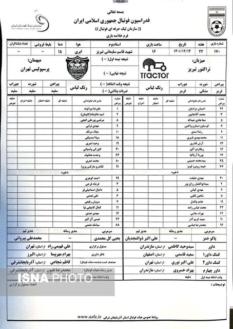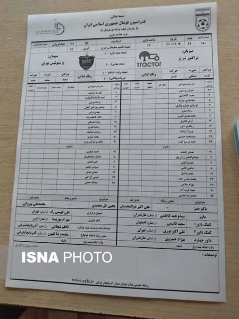 تراکتور قبل از بازی با بدشانسی محمدرضا اخباری را از دست داد و میلاد سرلک و گولسیانی نیز جای خود را به محمد فرجی و کمال کامیابی نیا دادند.