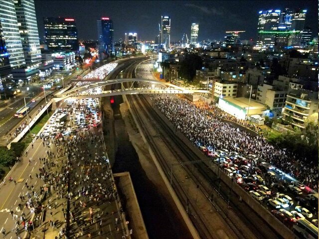 به گزارش ایسنا، به نقل از  تایمز آو اسراییل، پس از اینکه بنیامین نتانیاهو، نخست‌وزیر رژیم صهیونیستی، یوآو گالانت، وزیر جنگ کابینه خود را به دلیل اعتراض به اصلاحات قضایی برکنار کرد، اپوزیسیون و مخالفان نخست‌وزیر فراخوان تظاهرات دادند که در پی آن ده‌ها هزار تن در تل‌آویو، بزرگراه آیالون را مسدود کردند. هم‌چنین در قدس نیز هزاران تن در مقابل خانه نتانیاهو تجمع کردند.