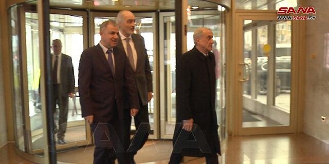 این هیئت در فرودگاه مسکو مورد استقبال بشار الجعفری، سفیر سوریه در مسکو قرار گرفت.