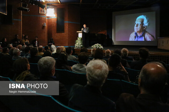 پخش تصویری از مجید باقربیگی و صحبتهای او درباره کیومرث پوراحمد از دیگر بخشهای این مراسم بود که در پایان با خواندن اسم تمام آثار این هنرمند و تشویق حاضران همراه بود.