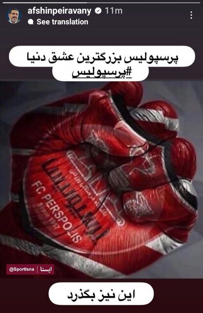 افشین پیروانی، مدیر تیم فوتبال پرسپولیس هم در واکنش به شایعات حضور بیرانوند در استقلال این استوری را منتشر کرد:
