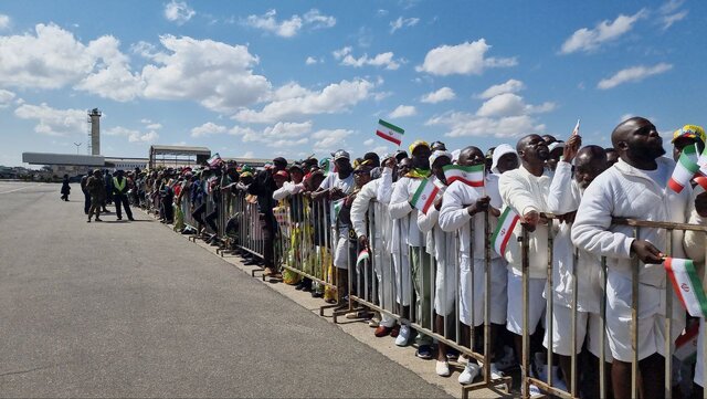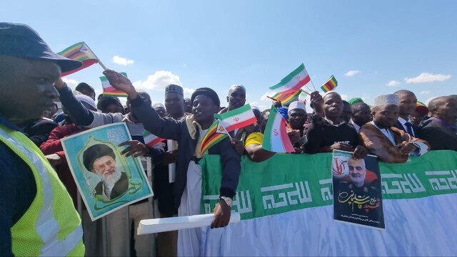 حالا دو رییس جمهور بعد از ساعتی که پیاده بین مستقبلین رفته اند، به انتهای جمعیت رسیده اند. رئیس جمهور زیمبابوه رو به مردم خودش کرد و چند شعار داد و مردم هم تکرار کردند. سپس رو به جمعیت فریاد زد " آقای رئیسی برادر عزیز من هستند".