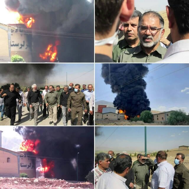حضور استاندار لرستان در شهرک صنعتی دچار حریق شده دورود