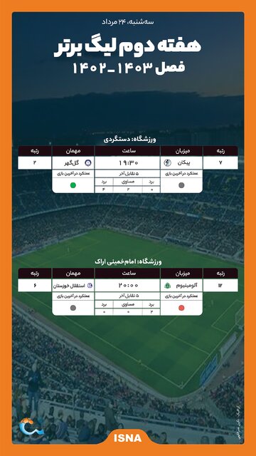 اینفوگرافیک/ برنامه روز نخست هفته دوم لیگ برتر؛ رویارویی تیم‌های صنعتی‌