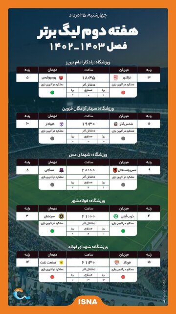 اینفوگرافیک/ برنامه روز دوم هفته دوم لیگ برتر؛ جدال سرخ‌ها در تبریز