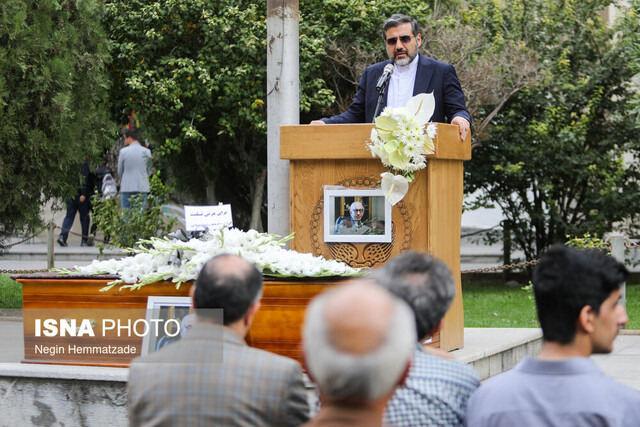 به گزارش ایسنا، در مراسم تشییع پیکر این پزشک، فیلسوف، زبانشناس، نقاش، ریاضیدان، نویسنده و مترجم متون مهم ادبی و فلسفی که صبح امروز (دوشنبه، ۲۴ مهرماه) از مقابل دانشکده ادبیات دانشگاه تهران برگزار شد، ابتدا پیام رضا داوری اردکانی، استاد بازنشسته گروه فلسفه دانشگاه تهران و رئیس پیشین فرهنگستان علوم، توسط علیاصغر مصلح، استاد فلسفه دانشگاه تهران، خوانده شد.