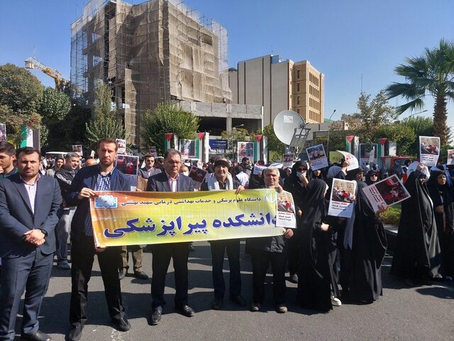همچنین در تجمع امروز، پزشکان، پرستاران، کادر درمان و امدادگران و داوطلبان جمعیت هلال احمر کشورمان با امضای توماری ضمن ابراز نگرانی از وضعیت موجود غزه، حمایت و کمکرسانی به مردم فلسطین و محکومیت حمله به مراکز درمانی را درخواست کردند.