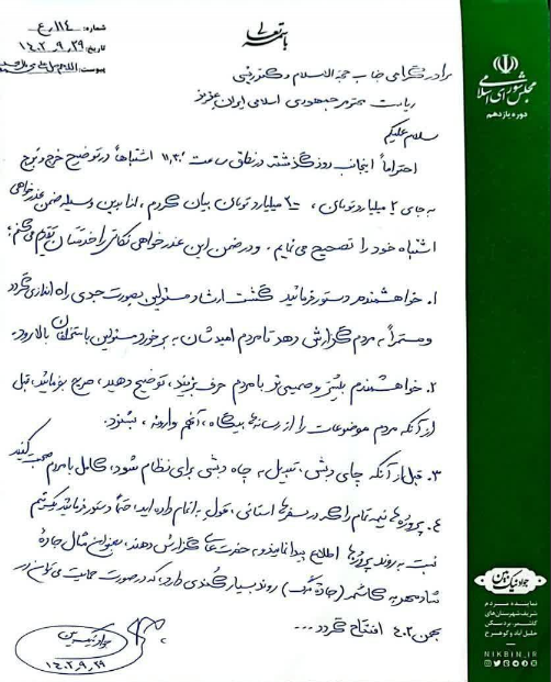 به گزارش ایسنا، تصویر نامه این نماینده مجلس شورای اسلامی خطاب به سید ابراهیم رئیسی را مشاهده میکنید: