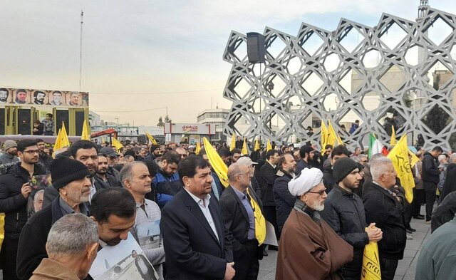 همچنین محمد مخبر معاون اول رئیسجمهور در حاشیه این مراسم گفت: د: خون این همرزم شفیق شهید حاج قاسم سلیمانی که مجاهدتهای فراوانی در حوزه مبارزه با تروریسم و داعش داشت، به زودی دامن جنایتکاران صهیونیست را خواهد گرفت.(متن سخنان محمد مخبر را اینجا بخوانید)