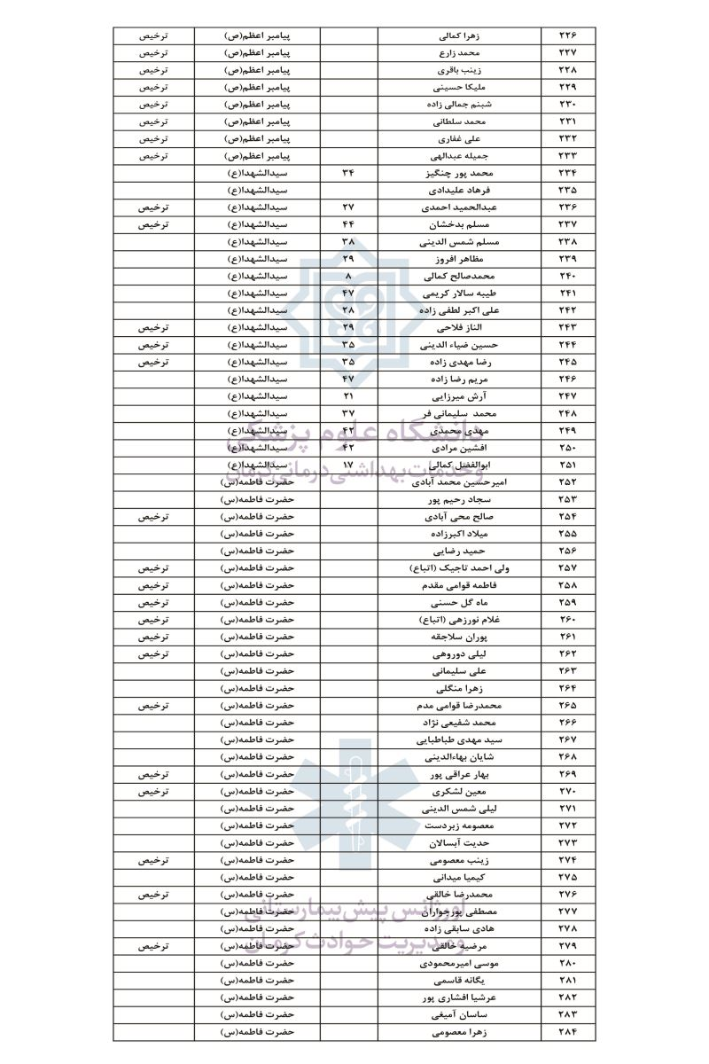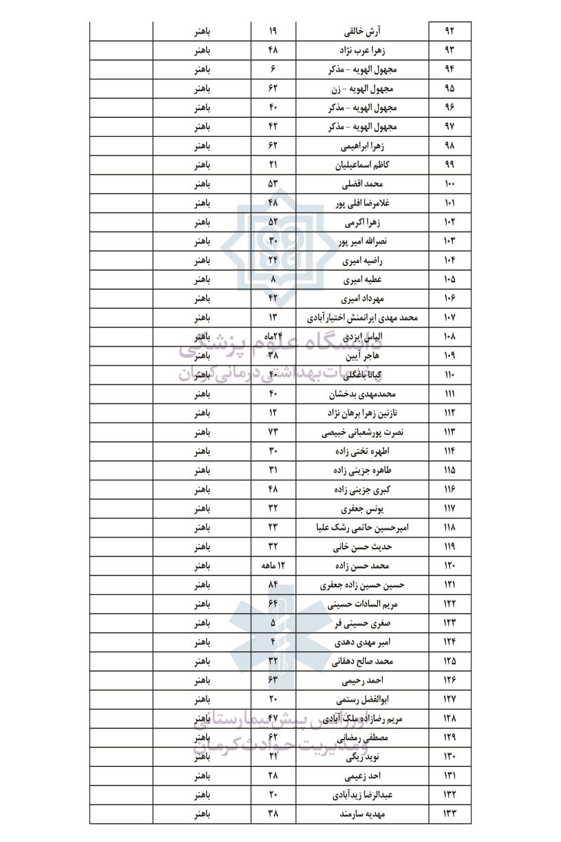 اسامی مصدومان به شرح زیر می‌باشد: