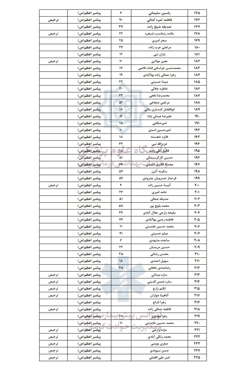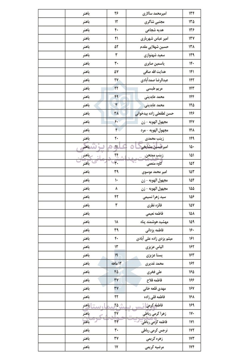 در صورت اعلام اسامی دیگر مصدومان، این فهرست تکمیل می‌شود.