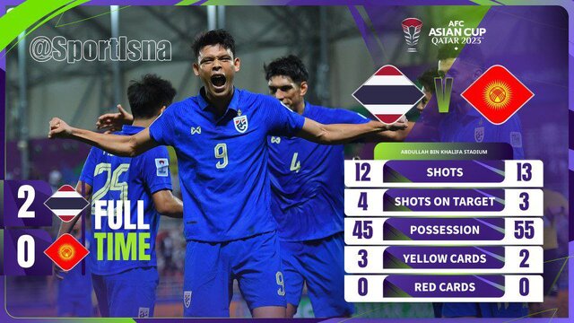 به گزارش ایسنا، در جریان هفته نخست جام ملتهای آسیا ۲۰۲۳، از گروه F تیم ملی فوتبال تایلند از ساعت ۱۸ امروز (سه شنبه) در ورزشگاه عبدالله بن خلیفه شهر دوحه به مصاف قرقیزستان رفت که این دیدار در نهایت با برتری ۲ بر صفر به پایان رسید.
