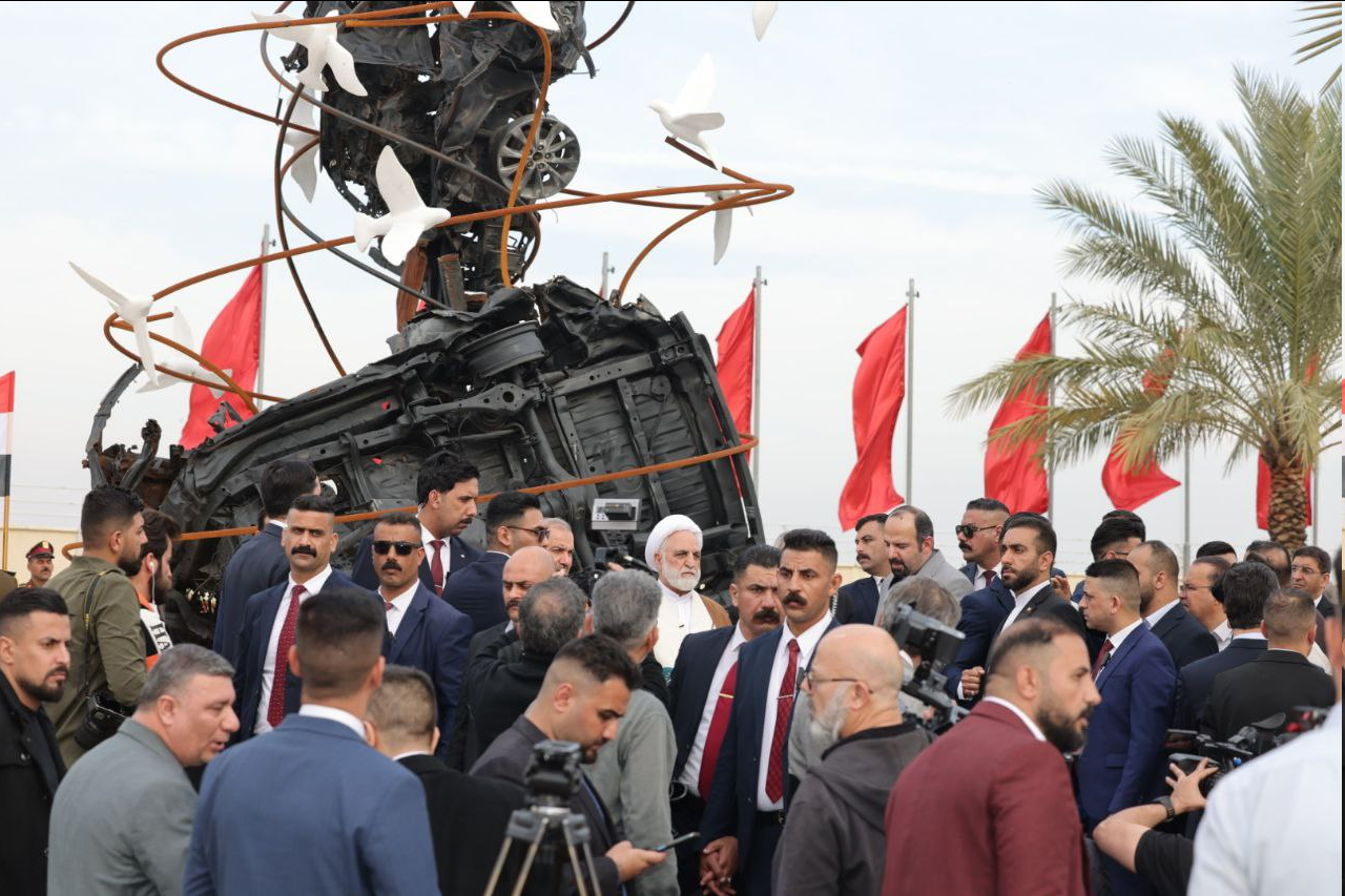 رئیس دستگاه قضای جمهوری اسلامی ایران و هیأت همراه، سپس در یادمان محل شهادت سردار سپهبد «حاج قاسم سلیمانی» فرمانده پیشین نیروی قدس سپاه، «حاج ابومهدی المهندس» و همرزمانشان در نزدیکی فرودگاه بغداد حضور یافتند و یاد و خاطره این شهیدان را گرامی داشتند.