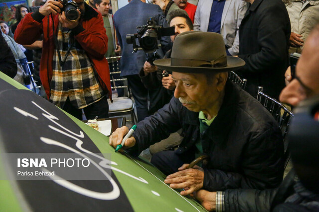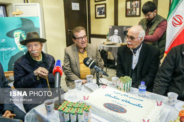 در ادامه، کیک جشن پایان دوره مکتب‌خانه سنگلج توسط نصیریان بریده شد.