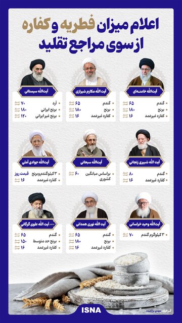 اینفوگرافیک/ میزان کفاره و فطریه اعلام شده توسط مراجع تقلید