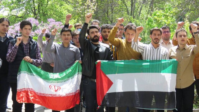 دانشجویان شرکتکننده در این تجمع همبستگی خود را با دانشجویان آمریکایی و اروپایی که از مردم مظلوم فلسطین حمایت میکنند، اعلام کردند.