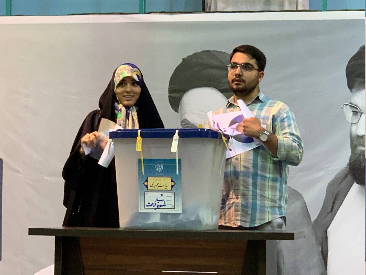 در خلال برگزاری انتخابات، وقتی که یک زوج جوان قصد انداختن رای خود به صندوق را داشتند، عکاسان از آنها خواستند که به دوربینها نگاه کنند؛ در این هنگام یکی از آنها عکس قالیباف و دیگری عکس جلیلی را به دوربین عکاسان نشان دادند و همزمان رایشان را به صندوق انداختند.