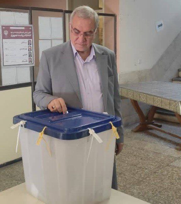 آخوندی پس از شرکت در انتخابات در جمع خبرنگاران تاکید کرد: بنده نیز برای توسعه ایران و آبادانی ایران و برای ایران رای می دهم.