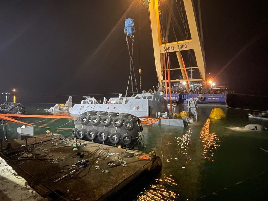 پس از اینکه سهند از آب بیرون آورده شد، کار تخلیه مخازن و محیط آب گرفته آن در جریان است.