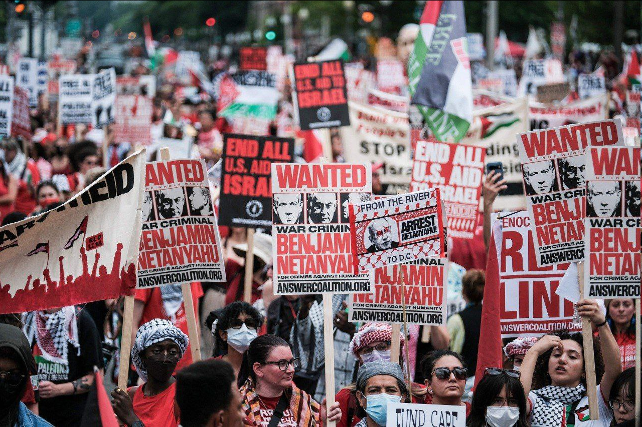 به گزارش ایسنا، «بنیامین نتانیاهو» نخست وزیر رژیم صهیونیستی چهارشنبه شب در حالی در کنگره آمریکا سخنرانی کرد که همزمان هزاران نفر مقابل ساختمان کنگره علیه او شعار سر داده و پلاکاردهایی با شعار «نتانیاهو تحت پیگرد است . . . او جنایتکار جنگی است» در دست داشتند.