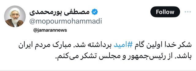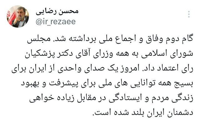 رئیس‌مجلس شورای اسلامی هم نوشت: نمایندگان محترم مجلس در راستای همکاری با دولت محترم، گام دوم وفاق را برداشتند و به تمام اعضا کابینه پیشنهادی دکتر پزشکیان رأی اعتماد دادند.