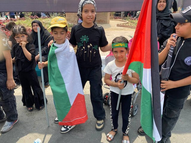در میان جاماندگان اربعین، حضور کودکان چشم‌گیر است. برخی از آنها پرچم فلسطین را به دوش کشیده و یا در دست داشته تا به این شکل از کودکان غزه و فلسطین در پیاده‌روی جاماندگان اربعین یاد کرده باشند و پیام دوستی و دلجویی خود را برای آنها فرستادند.