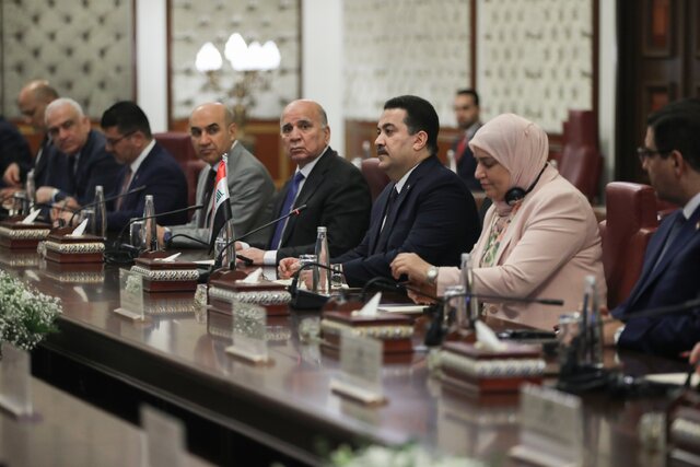 رئیس جمهور سپس در محل کاخ نخست وزیری با محمد شیاع السودانی دیدار کرد و پس از آن نشست مشترک اعضای هیئتهای عالی رتبه دو کشور برگزار شد.