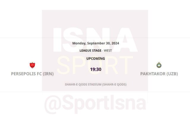 دیدار پرسپولیس - پاختاکور دوشنبه ۹ مهر ساعت ۱۹:۳۰ به وقت تهران برگزار خواهد شد.