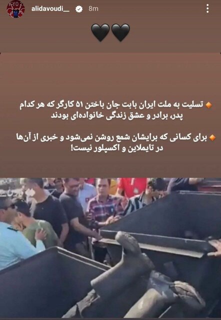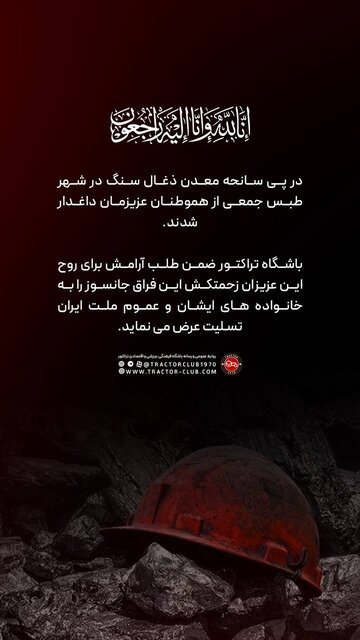 ضمن عرض تسلیت برای بازماندگان این واقعه دردناک، صمیمانه خود را در سوگ مردم شریف طبس و خانوادههای داغدار سهیم میدانیم."
