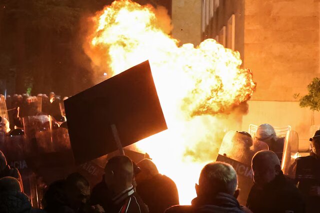 معترضان مقابل دفتر نخستوزیری آلبانی تجمع کردند و در ادامه تجمع خود، تصویری از نخستوزیر کشورشان را به آتش کشیدند. پلیس هم برای متفرق کردن معترضان به شلیک گاز اشک آور متوسل شد.