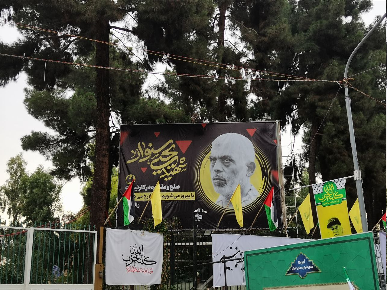 تصاویر و بنرهایی از پرچم حزبالله و همچنین «یحیی السنوار» رئیس شهید دفتر سیاسی حماس در مسیر برگزاری راهپیمایی نصب شده بود.
