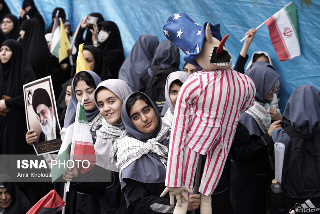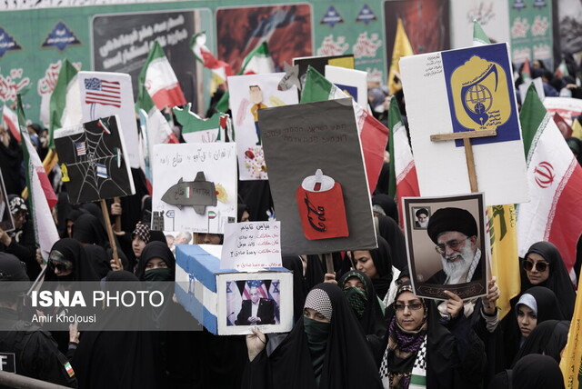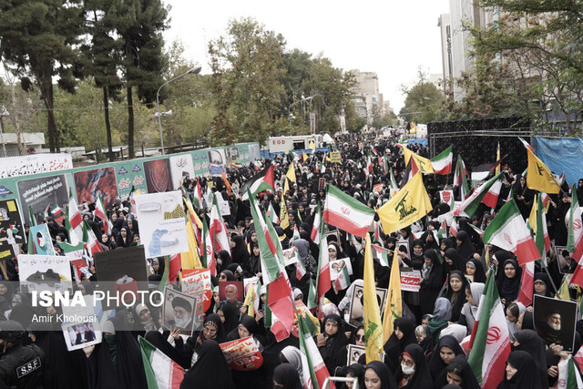 به گزارش ایسنا، این مراسم از لحظات آغازین با حضور گسترده مردم و با سردادن شعار «مرگ بر آمریکا» و «مرگ بر اسرائیل» از میدان فلسطین به سمت لانه جاسوسی همراه بود.