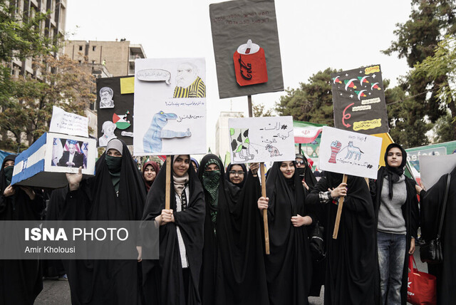 شرکت کنندگان در این راهپیمایی همچنین شعارهای «فاتح جبهه حق، حزبالله است»، «باید جهان ببیند افول آمریکا را» «جنایت صهیونیست، جنایت آمریکا است» «لعنت بر صهیونیست، لعنت بر آمریکا» سر دادند.
