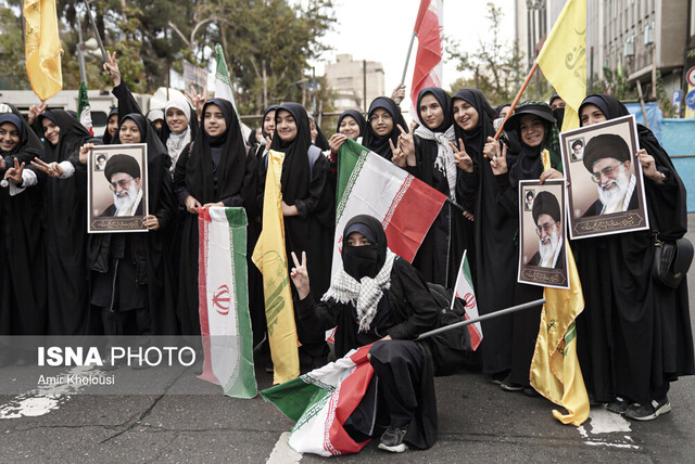 ما شرکتکنندگان در راهپیمایی سراسری یومالله ۱۳ آبان، بویژه دانشآموزان و دانشجویان حاضر، با اعتماد به نصرت الهی و شعارهای "مرگ برآمریکا" و "هیهات من الذله" صدای مظلومیت مردم فلسطین، غزه و لبنان را به گوش همه مظلومان رسانده و با بانگ رسای "اللهاکبر" و "خامنهای رهبر" بهجهانیان اعلام میکنیم:
