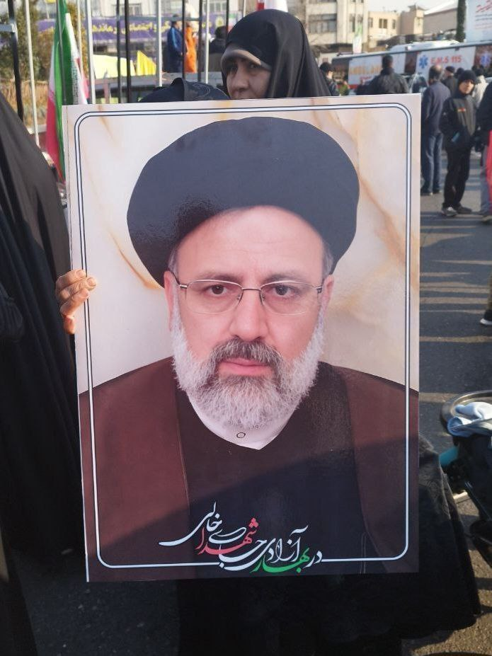 نمایشگاههای عکس از توانمندیهای کشور در مسیر راهپیمایی برپاست و همچنین عکس شهید ابراهیم رئیسی، رئیس جمهور شهید در دست راهپیمایان تهرانی دیده میشد.