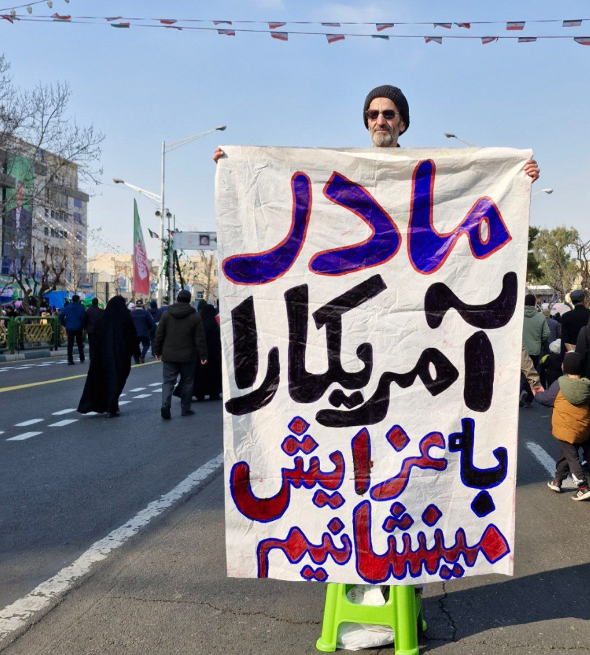 راهپیمایی کنندگان تهرانی با در دست داشتن پلاکاردهای مختلف که بر روی آن بیانات مقام معظم رهبری در خصوص مذاکرهدبا آمریکا ثبت شده بود، بار دیگر شرارت های این کشور را یاد آور شدند. ماکت های زخمی و خشمگین ترامپ و نتانیاهو از جمله نمادهای شکست محکر شرارت آمریکایی_ صهیونیستی بود که در مسیر راهپیمایی بر روی دست مردم به نمایش گذاشته شده است.