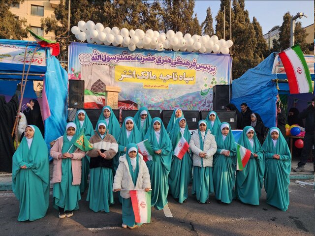 گروههای سرود و رزمنواز با اجرای زنده از راهپیمایان استقبال میکنند.