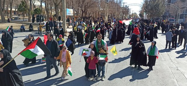 از هر سو، خانوادهها، جوانان پرانرژی، مادران و پدران با پرچمهای سبز و سفید و سرخ در دست و کودکان با چهرههای شاداب و پر از امید، به سوی میدان مرکزی شهر( میدان بسیج) روانه شدند و صدای موسیقی انقلابی از بلندگوها به گوش میرسید و رگههای نخستین نور خورشید، بر چهرههای مشتاق و مصمم مردم میتابید، هر قدم، هر نگاه، و هر لبخند، حکایت از عشق به ایران و افتخار به میراث گرانبهای انقلاب داشت.