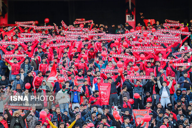 هواداران تراکتور با طلق قرمز بر روی فلشرهای موبایل خود جو جالبی در ورزشگاه خلق کردند.