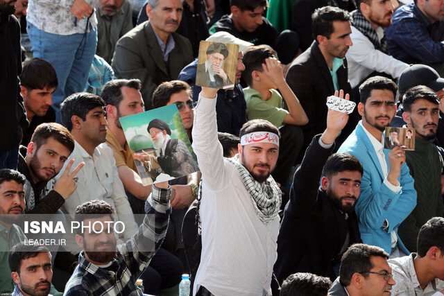 پس از پایان نماز مردم با شعار «حیدر حیدر» رهبر معظم انقلاب را تا جایگاه سخنرانی همراهی کردند.