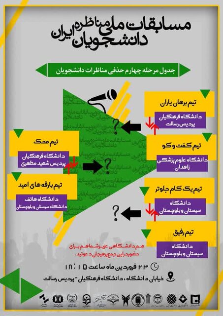 صفدری گفت: مرحله حضوری مسابقات با حضور تیم های این دانشگاه ها در روز شنبه ۲۳ فروردین ساعت ۱۸ در محل دانشگاه فرهنگیان زاهدان، برگزار خواهد شد.